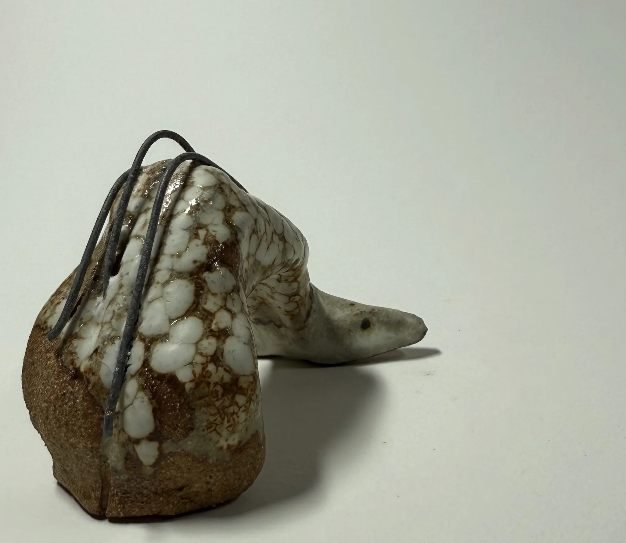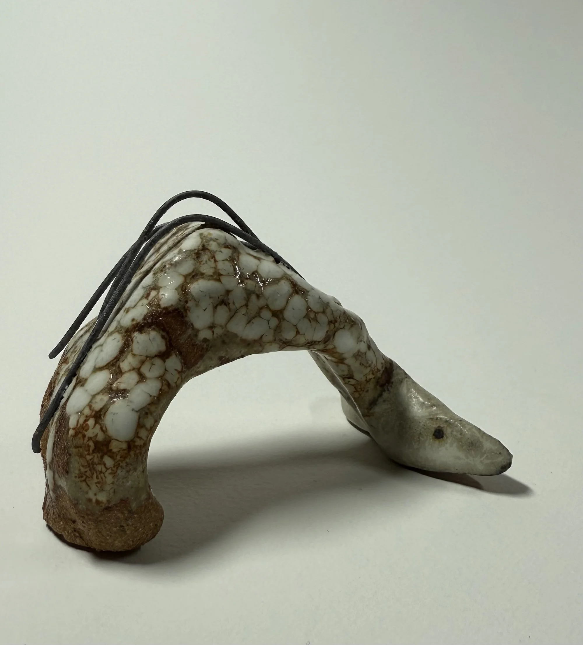 Fish Materials: Stoneware, glaze and wire Year: 2024 Dimensions: 4”L, 2.75”W, 3”H”